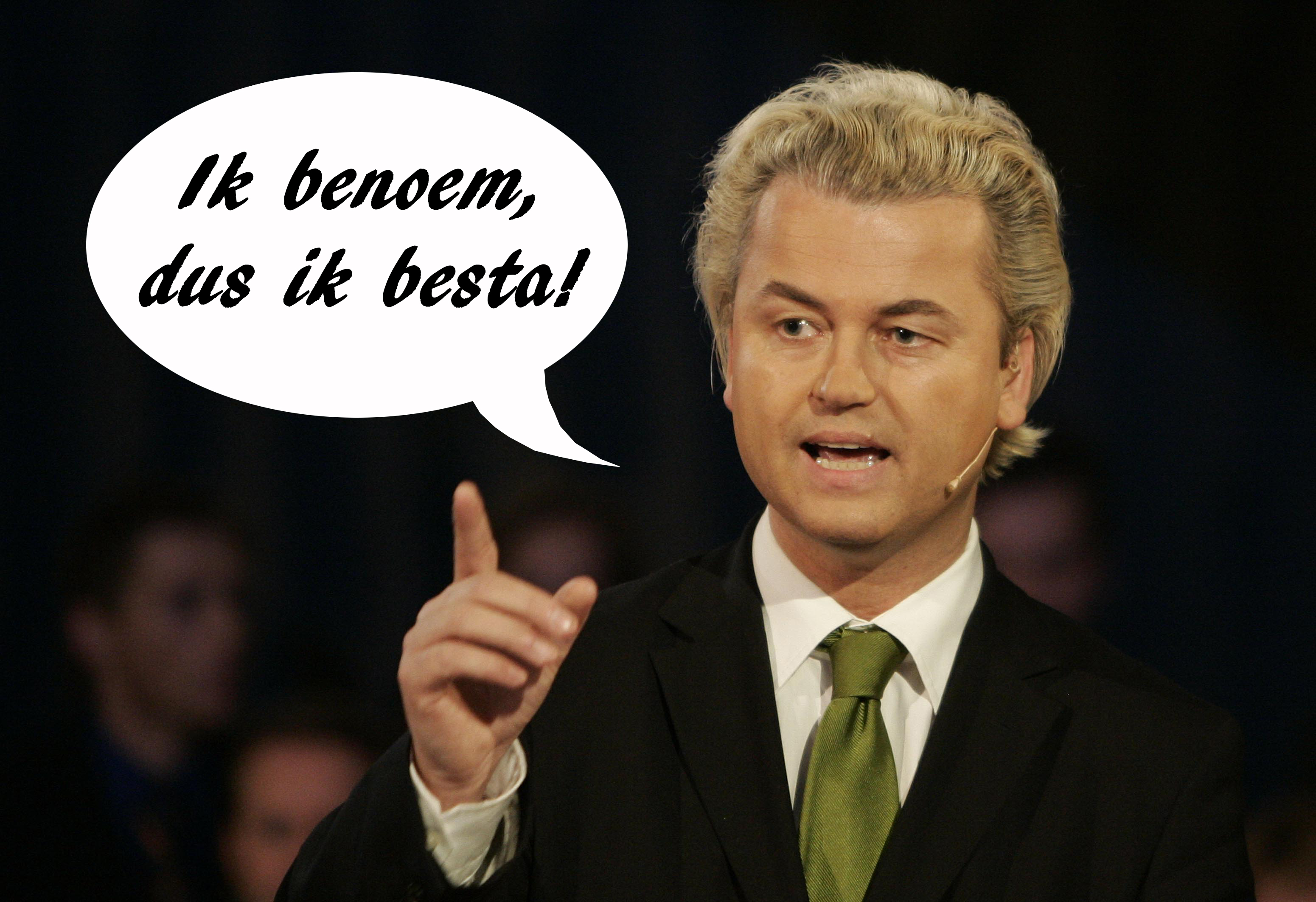 Kampioen van het benoemen is natuurlijk al 10 jaar en 2 dagen lang Geert Wilders van de neo-nationalistische PVV-beweging, de partij die twee leden heeft, en waarvan allebei die leden Geert Wilders heten. In tegenstelling tot Sybrand Buma, waarvan we enkele dagen geleden al gemeld hadden dat hij het vreselijk nodig vond om te benoemen dat sommige mensen er toch wel erg onwelgevallige meningen op na houden, was Wilders op het eveneens onheilzame idee gekomen om een oude stoffige benoemrede uit zijn PVV-la op te vissen die we al enkele malen daarvoor van hem gehoord hadden. Niet erg slim zou je op het eerste gezicht denken, want als je dan tóch de gelegenheid krijgt om op nationale televisie je favoriete hobby uit te oefenen, kom dan met een nieuwe verfrissende benoemspeech, zodat de mensen niet al na enkele minuten in slaap vallen bij het horen van deze langspeelplaat die al jaren in dezelfde groef blijft hangen! Maar nee, eigenwijs zoals hij altijd is slaat de Grote Blonde Leider alle adviezen in de wind en begint aan zijn grijsgedraaide redevoering.